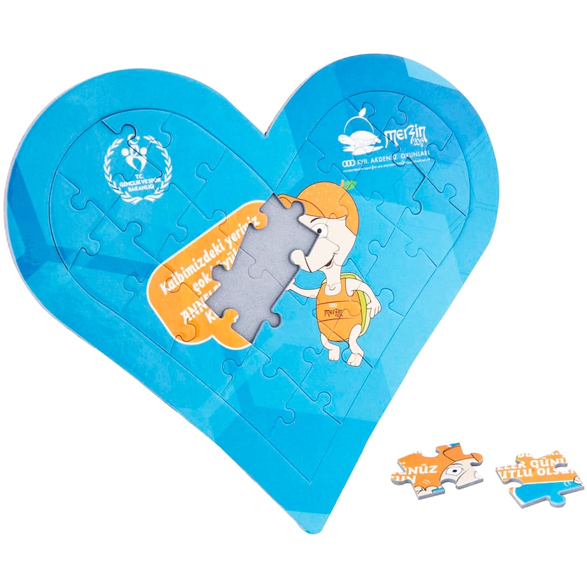Hjerteformet puslespill med 27 biter. Last ned malen og design ditt høyst personlige puslespill! Bestill hjerteformede puslespill med trykk hos Axon Profil!