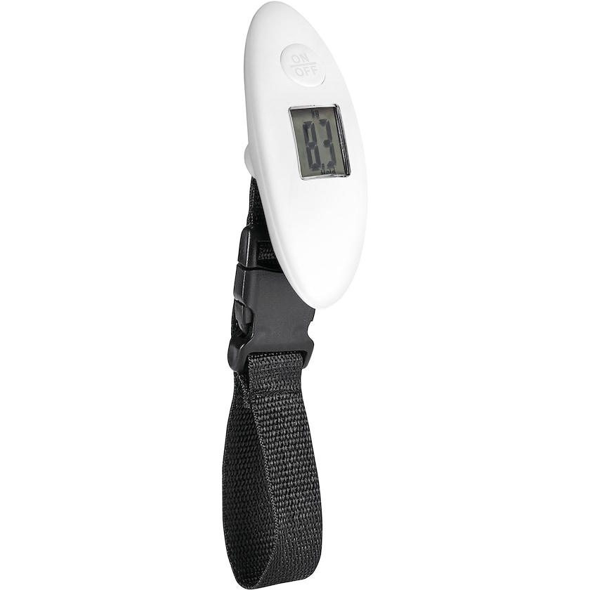 Digital bagasjevekt med trykk. Maksimal vekt 40 kg. Bruker 1 stk CR2032 -batteri (inkludert).