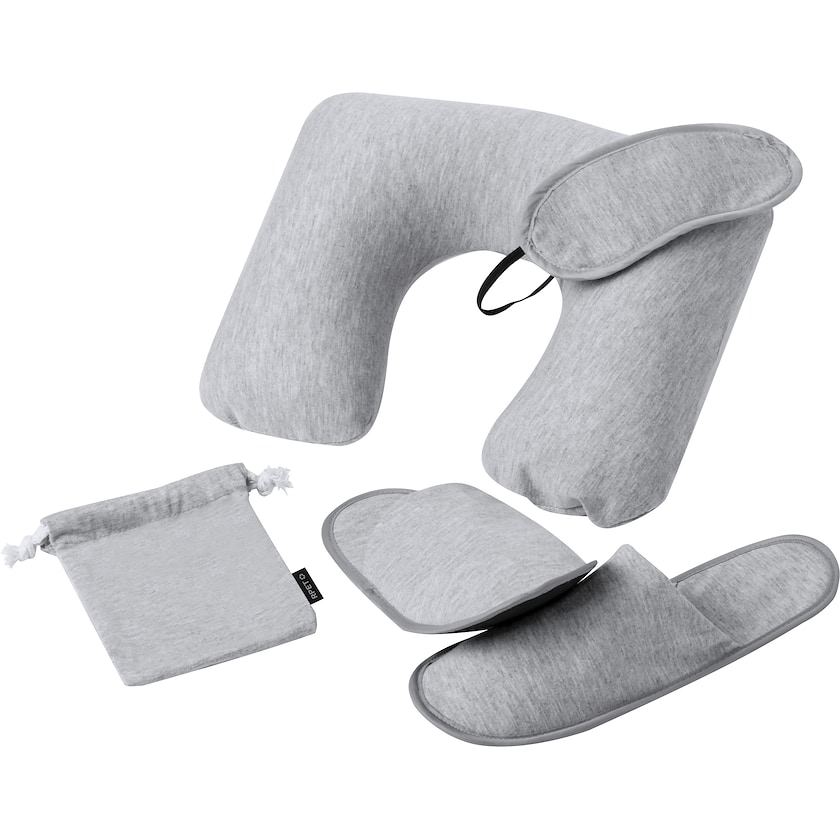 Reisesett med alt til en behagelig reise. Tøflene er av typen one-size-fits-all og passer føtter i størrelse 36 til 43.