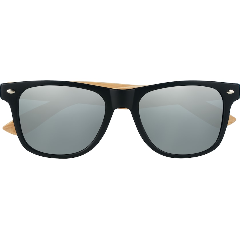 Solbriller med speilglass og stenger av bambus. Glassene har UV400-beskyttelse. Merking kan enten gjøres med trykk eller lasergravering på den ene eller begge stengene.