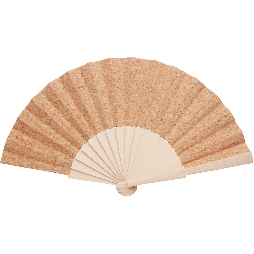Unik håndvifte av tre og kork. Materialet gir håndviften et naturlig og vakkert utseende. Trykket eller lasergraveringen gjøres på tredelen av håndviften.