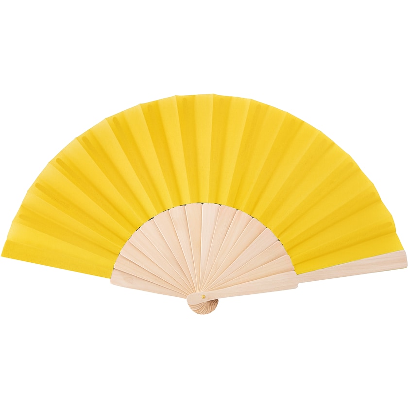 Vifte av tre for sommerens hete dager. Stoffet er laget av en vev av polyester og bomull. Merking kan enten gjøres med trykk i opptil to farger eller lasergravering på tredelen av viften. En kul og samtidig nyttig sommergave!