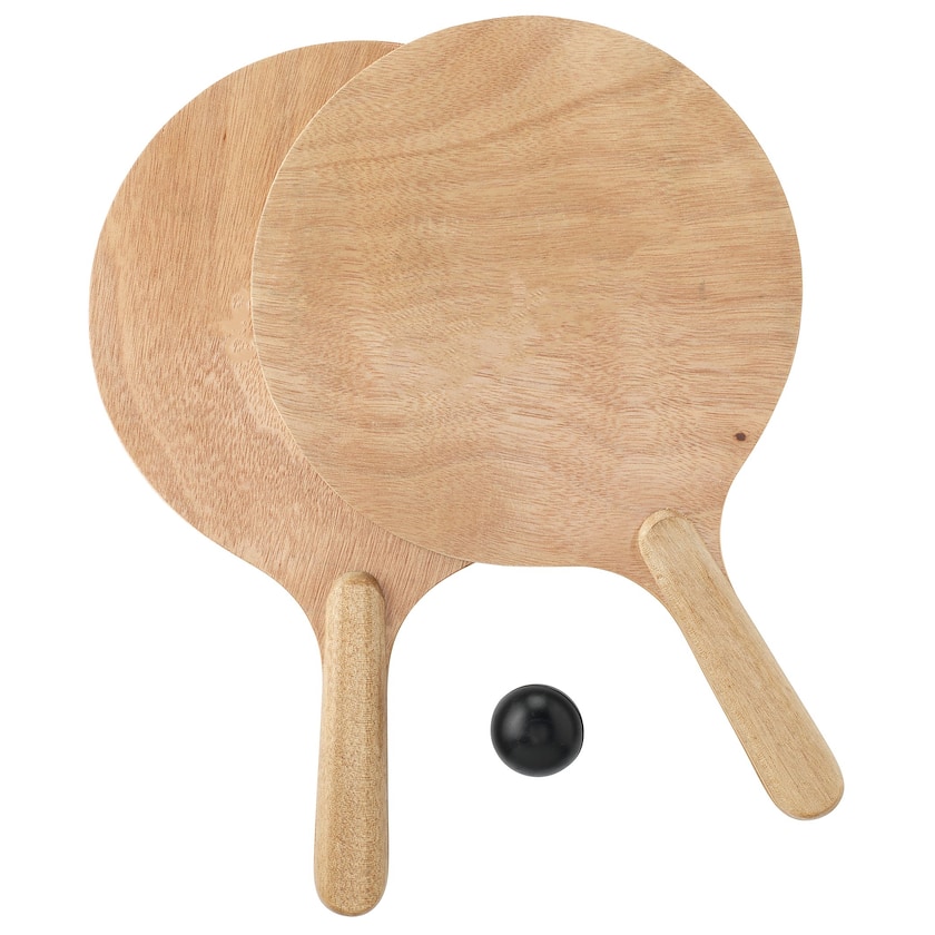 Luksuriøs strandtennissett med trykk. Racketene er laget av MDF-trefiber som er finert med poppel. Ballen er laget av gummi. Leveres i oppbevaringspose av bomull. Bare mulig med 1-fargetrykk. Trykkprisen gjenspeiler trykk på begge racketene.