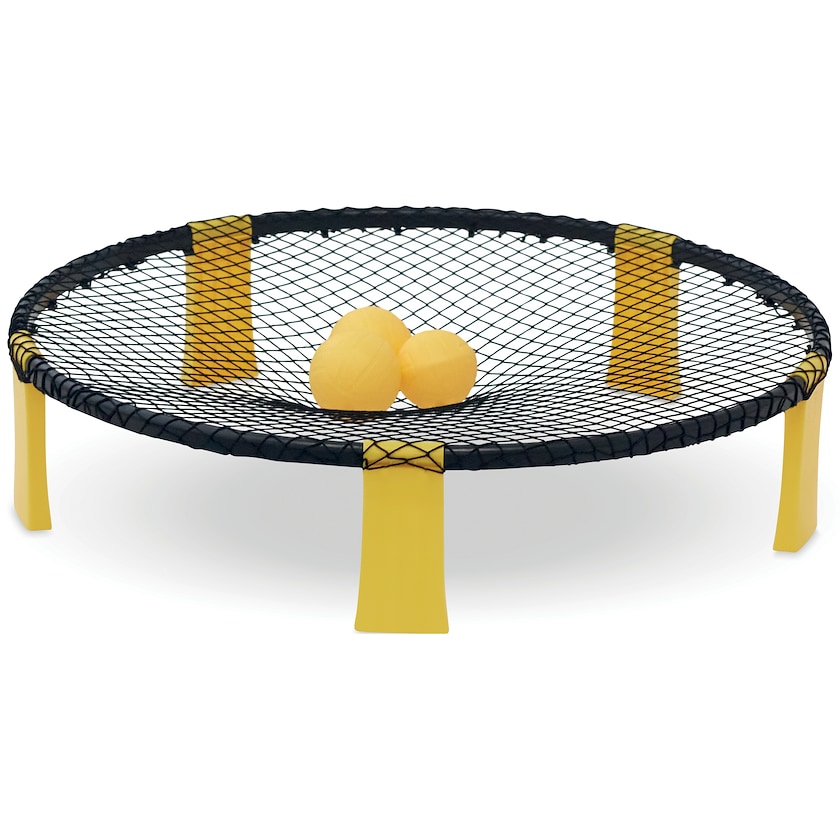 Stilig utendørsspill for både voksne og barn. Del opp i to lag og la det ene laget serve ballen i nettet. Når ballen spretter opp, har det andre laget tre sjanser til å få ballen tilbake i nettet. Hvis de mislykkes får laget som server et poeng. Det laget som raskets kommer til avtalt poengnivå vinner. Perfekt til stranden eller pikniken i parken. Trykket gjøres enten på oppbevaringsposen eller på ett av bena.