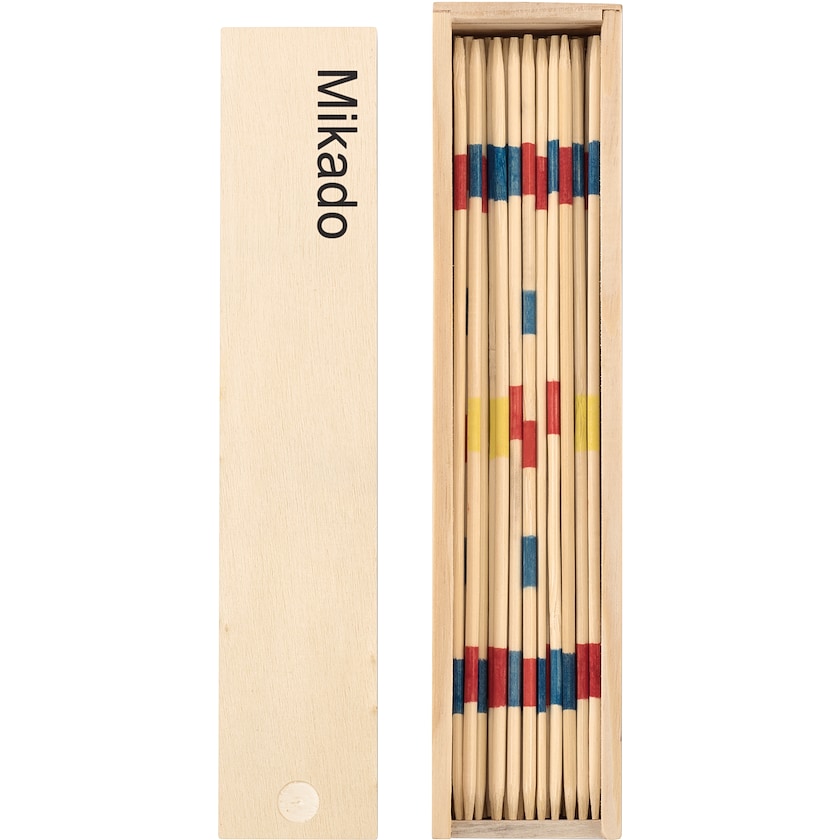 Mikadospill i treeske. Mikadospillet, eller pinnespill, er en artig klassiker som har vært spilt i generasjoner. Velg mellom trykk eller lasergravering.