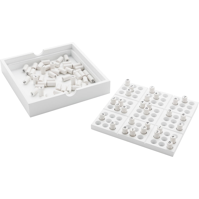 Sudoku-spill av FSC-sertifisert tre. Hele spillet er laget av tre. Selv oppbevaringsboksen er laget av tre. En spilleomgang kan ta alt mellom 20 minutter til 2 timer avhengig av hvor flink du er. Leveres i en naturfarget pappeske som også er FSC-sertifisert.