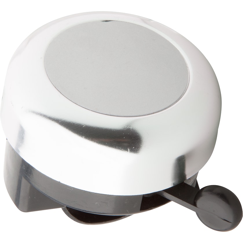 Ringeklokke til sykkel av aluminium. Merking gjøres med et digitaltrykk som plasseres under en beskyttende epoksyoverflate.