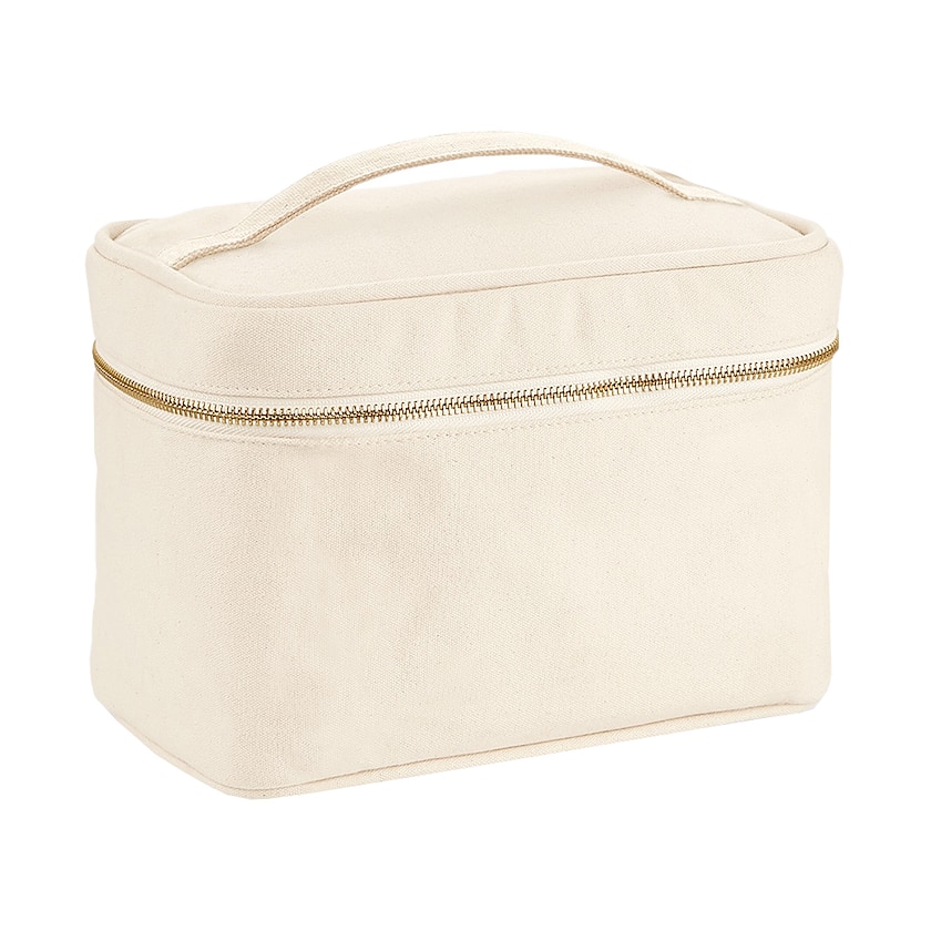 Stor toalettmappe i kraftig bomullsstoff. Cortes har et stort glidelåsrom som har plass til 5 liter. På toppen finnes et praktisk bærehåndtak. Et perfekt valg for deg som ønsker en stor toalettmappe i bomull med trykk!