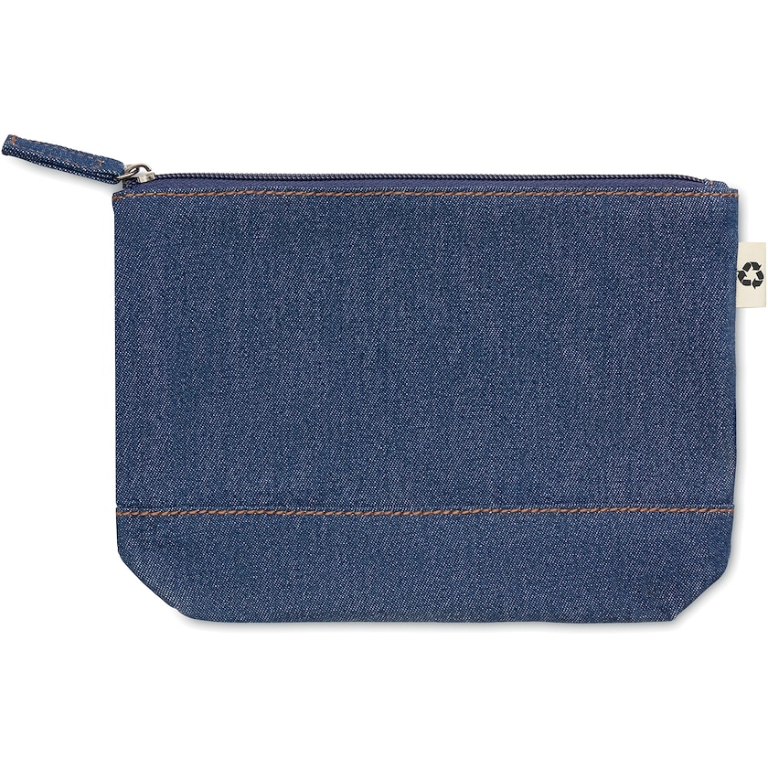 Toalettveske av denim. Edmonds, er utstyrt med glidelås og produsert av 50% resirkulert denim og 50% bomull. En trendy toalettveske av miljøvennlig materiale.