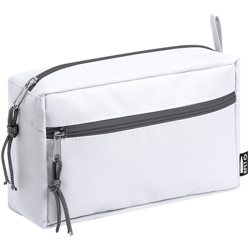 Miljøvennlig toalettmappe med eget trykk. Florence er laget av rPET, det vil si gjenvunnede PET-flasker. Toalettmappen har to glidelåsrom. På den ene siden er det en etikett som viser at den er laget av rPET. En god toalettmappe og et bra valg for miljøet.
