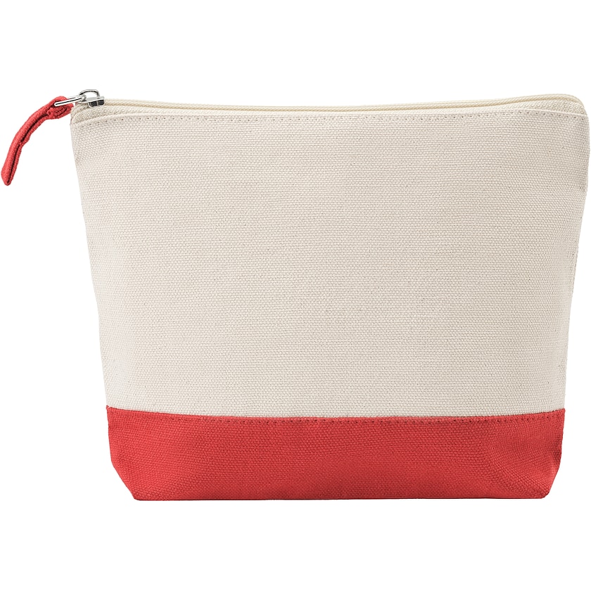 Toalettveske med tofarget bomullsstoff. Stoffet er laget av et 340 grams stoff av 100% bomull.