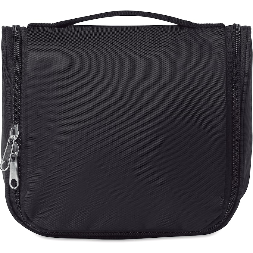 Toalettmappe som kan henges opp, med flere rom og nettlomme på innsiden. En toalettmappe med høy kvalitet til en attraktiv pris.