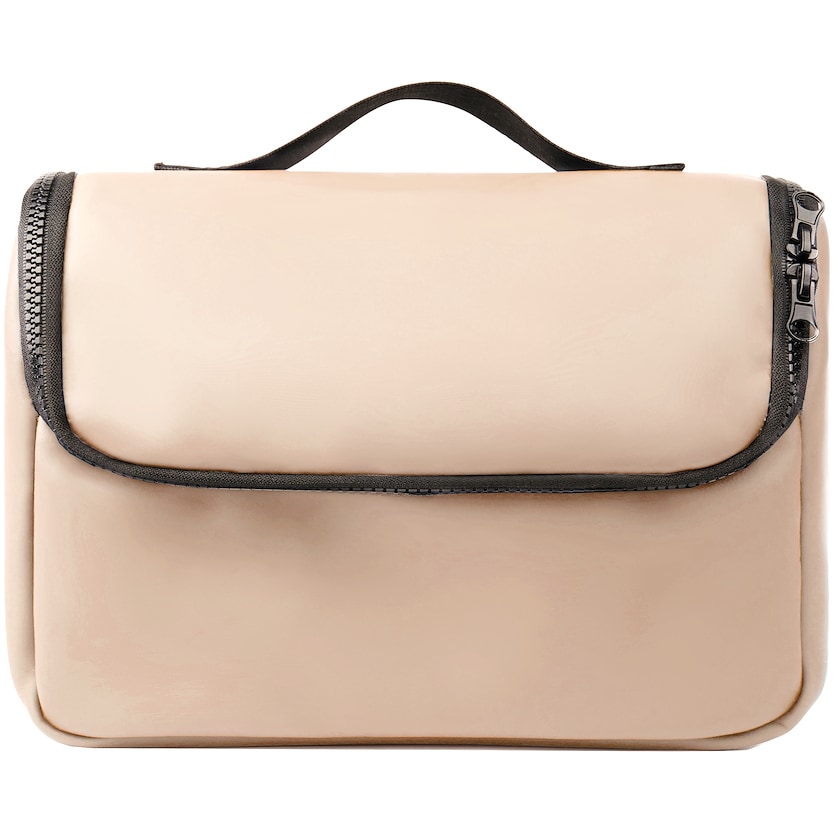 Toalettveske av vannavvisende kunstskinn. Materialet er lett å rengjøre. Innsiden er utstyrt med flere lommer til mindre tilbehør. Toalettvesken er utstyrt med en krok som gjør at den er enkel å henge opp.