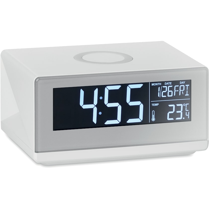 Tidløs lader som også fungerer som værstasjon og alarmklokke. Laderen er kompatibel med alle de siste mobiltelefonene.