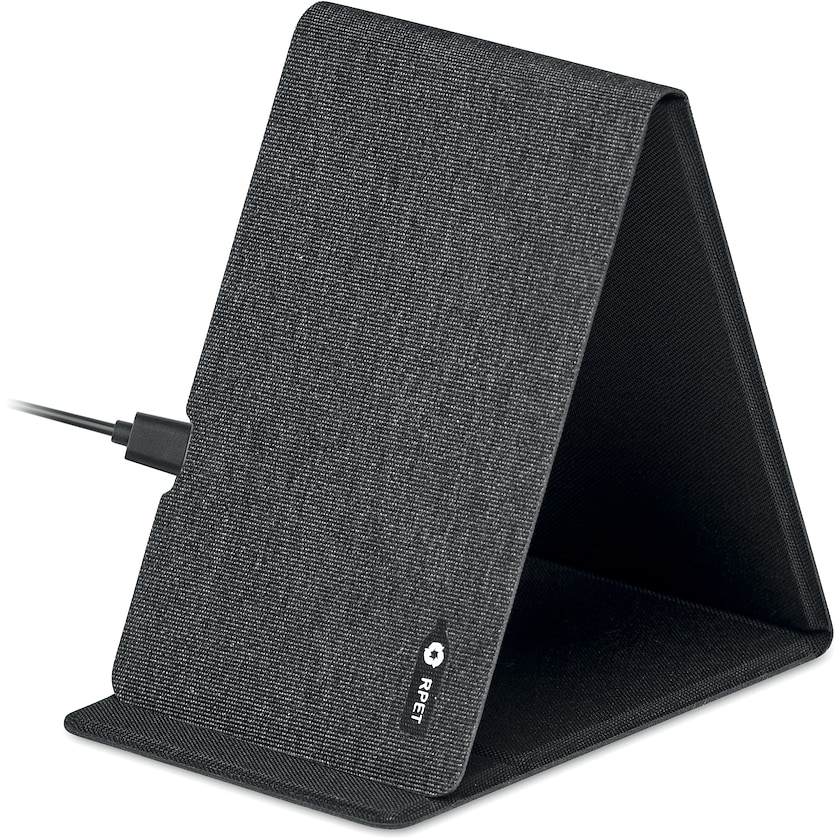 Sammenleggbar trådløs lader av miljøvennlig materiale. Folcroft, er produsert av RPET, dvs. resirkulerte PET-flasker. Laderen er kompatible med alle de nyeste mobiltelefonene.