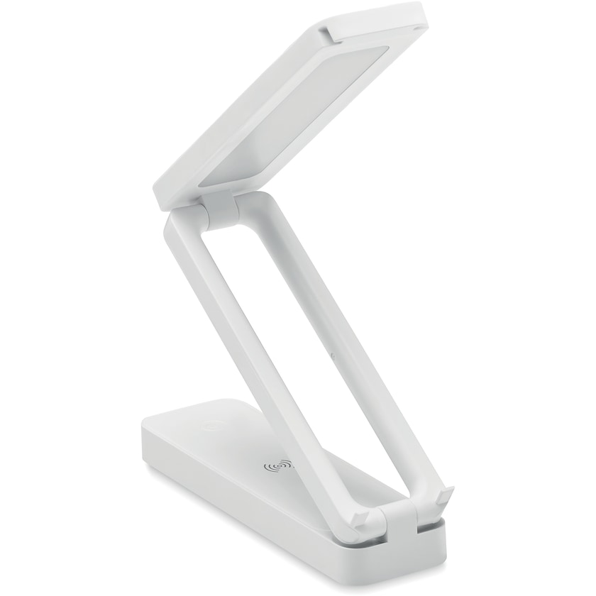 Trådløs lader kombinert med skrivebordslampe. Laderen har et 10 watts ladesystem til hurtiglading. Lampen har 14 LED-pærer med tre ulike lysnivåer.
