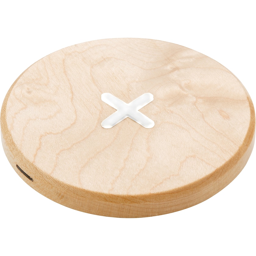 Ladeplate i ekte bjørk. Plassere mobiltelefonen på platen, når ladeindikatoren gir signal begynner mobilen å lades. Kompatibel med alle QI-aktiverte enheter som for eksempel den nyeste generasjonen Android, iPhone 8, 8S og X. Input 5V/2A.