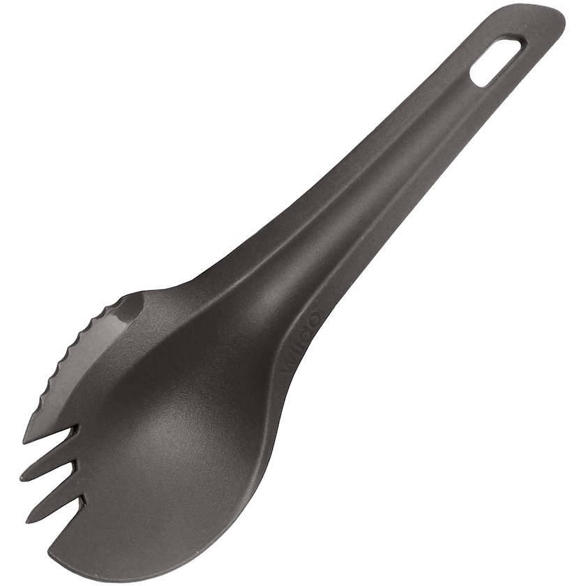 Multifunksjonell spork av høy kvalitet. Skje, gaffel og kniv i ett. Bare mulig med 1-fargetrykk.