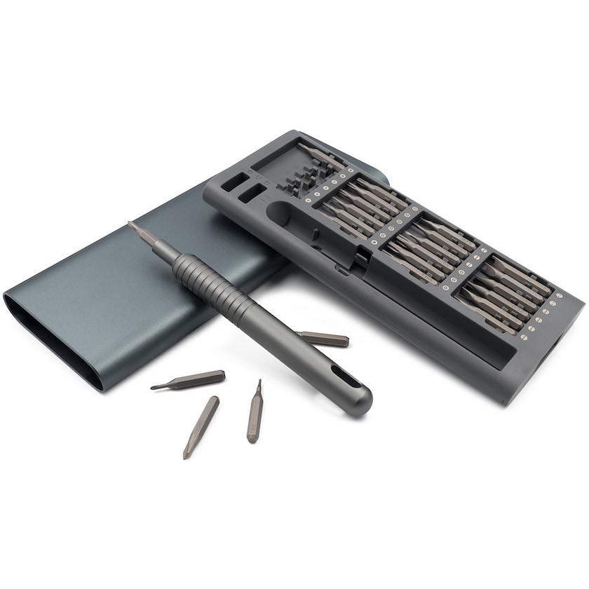 Påkostet skrujernsett med 48 stk. bits. Settet er laget av stål og aluminium. Et førsteklasses skrujernsett til huset.