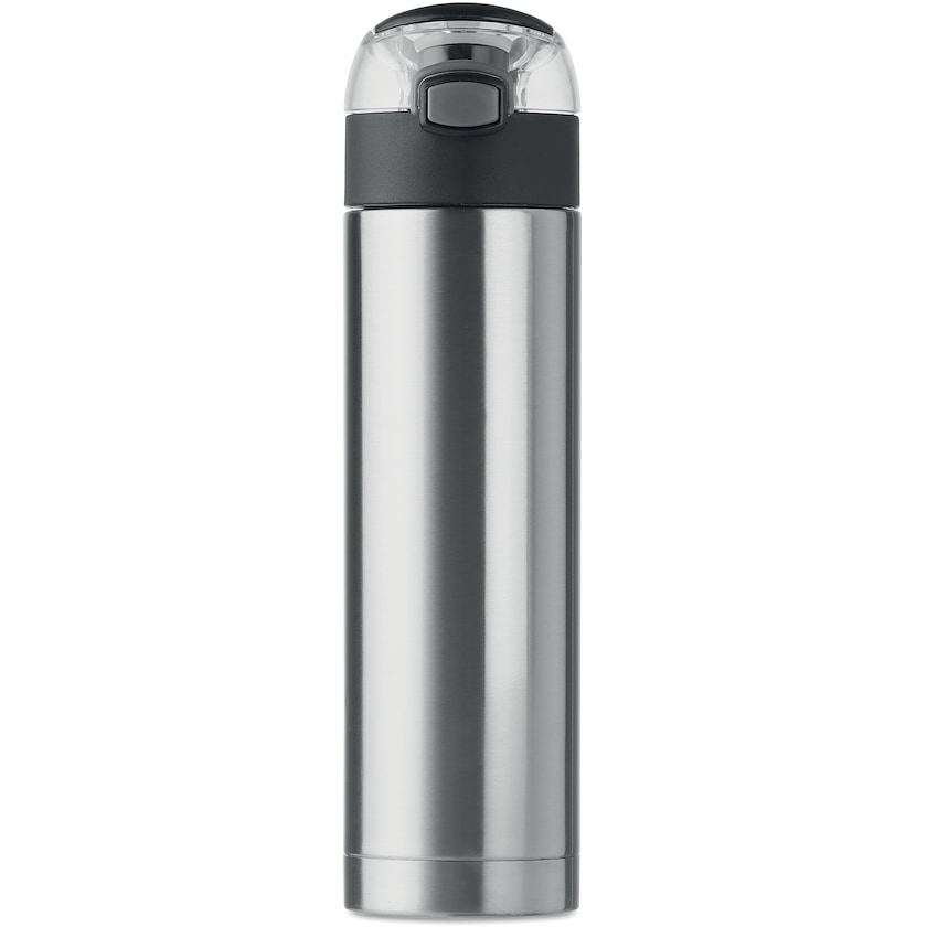 Sportflaske av rustfritt stål og med unik topp med trykk-ned-og-vri-funksjon. Flasken har doble vegger og er helt sikker mot lekkasjer. En sportflaske i høy kvalitet til en god pris.