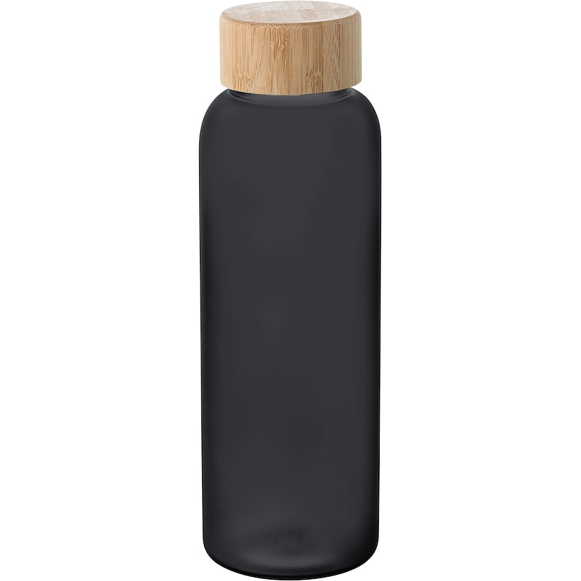 Glassflaske med lokk av bambus. Glasset er av typen borosilikat, det betyr at den er ildfast og veldig solid. Flasken leveres enkeltpakket i en pappeske. Merking gjøres med trykk i maksimalt én farge.
