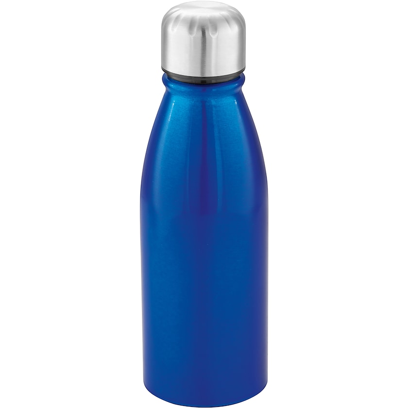 Sportsflaske av aluminium med lokk av rustfritt stål. Merkingen gjøres enten med 1-fargetrykk eller lasergravering.