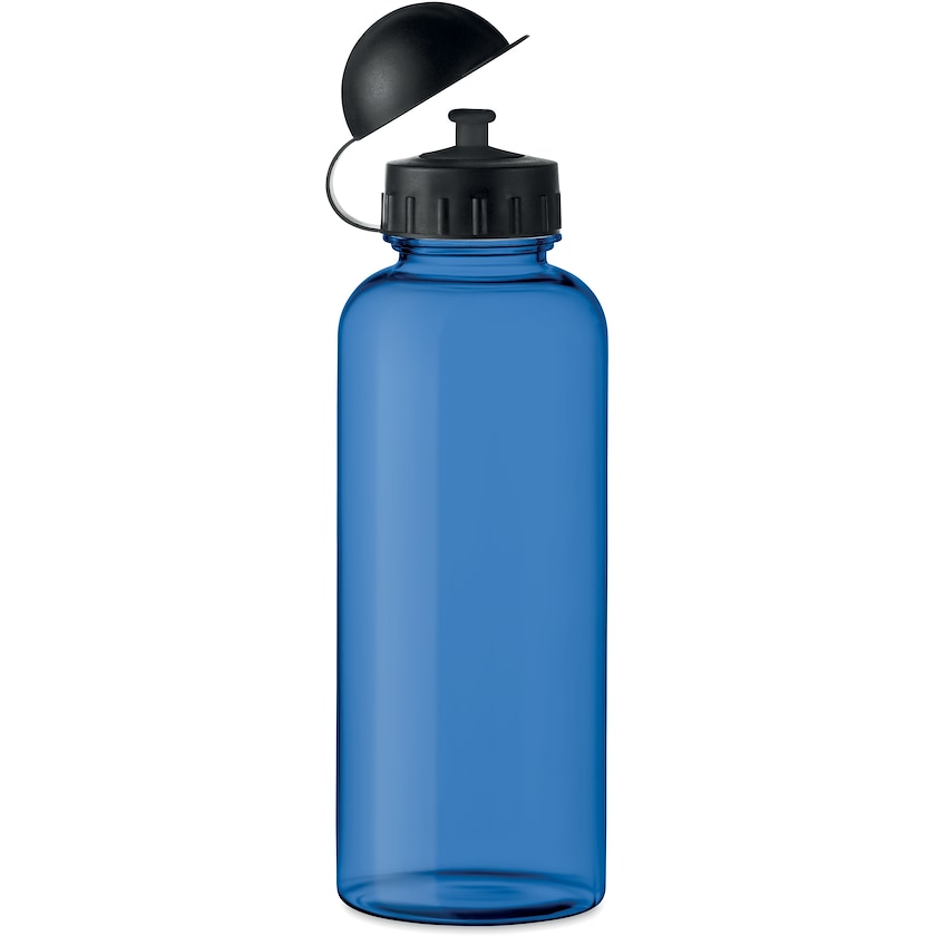 Miljøvennlig drikkeflaske av RPET. Flaskekroppen er laget av resirkulerte PET-flasker, dvs. RPET, og lokket er laget av PP-plast. Flasken er ikke egnet til kullsyreholdige drikker.