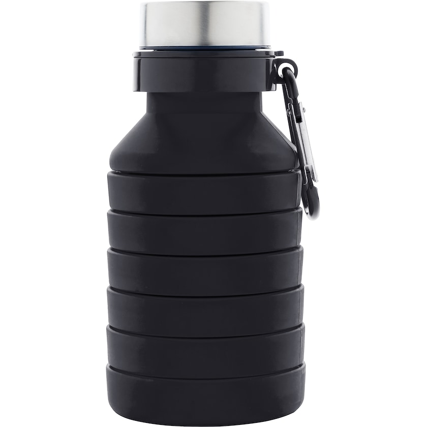 Sammenleggbar drikkeflaske av silikon. Flasken tar 50% mindre plass sammenfoldet, noe som gjør den perfekt til f.eks. håndvesken. Silikonen er 100% matsikker, og veldig lett å holde ren. Leveres i stilig gaveeske. Merkingen gjøres enten med et digitaltrykk under epoksyetikett på lokket eller med lasergravering på lokket.