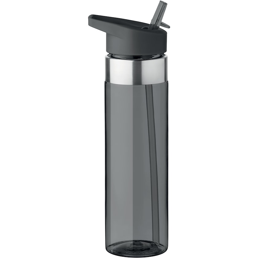 Moderne designet sportflaske med munnstykke. På toppen finnes en elegant ring av rustfritt stål. Flasken finnes i flere transparente farger. Kun trykk i en farge er mulig.