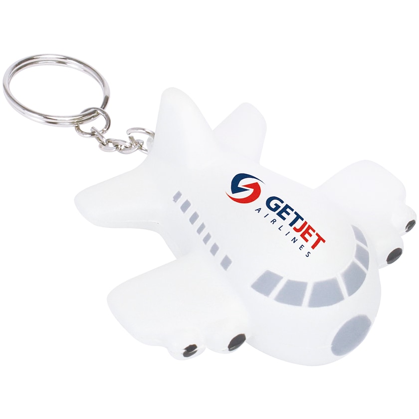 Stressball designet som et fly på en nøkkelring. Passer perfekt til flyselskap. Trykket tåler mye bruk.