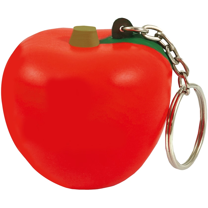 Stressball med nøkkelring formet som et eple. Trykket er av topp kvalitet, noe som gjør at trykket blir værende selv etter veldig mye knaing.