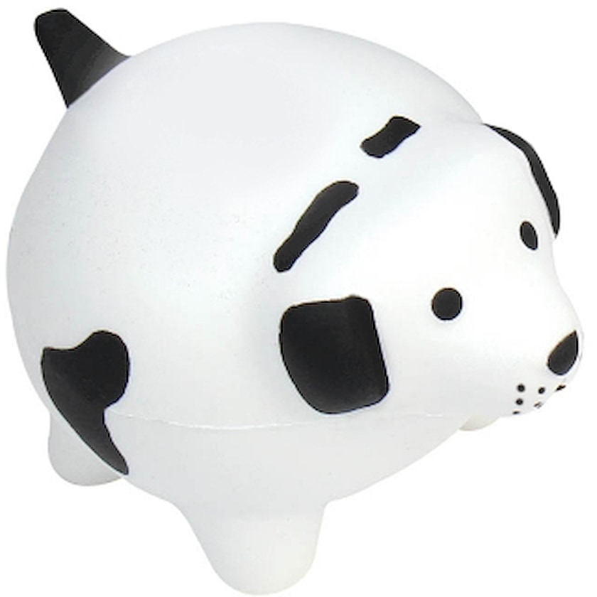 Stressball formet som en fet hund. Trykket er av topp kvalitet, noe som gjør at det sitter på under hele levetiden til stressballen.