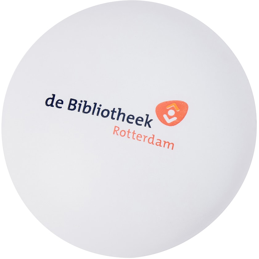 Rund og flat stressball med eget trykk. Axon Profil sitt trykk på stressballer er i høy kvalitet og tåler bruk over lang tid.