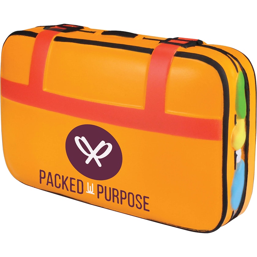 Stressball formet som en klassisk koffert. Passer perfekt til reisebyråer og flyselskaper. Trykket tåler mye knaing!