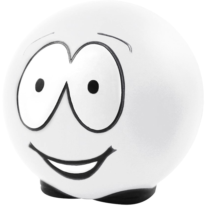 Morsom stressball med føtter og trykt ansikt. Trykket er av absolutt topp kvalitet og tåler langvarig bruk.