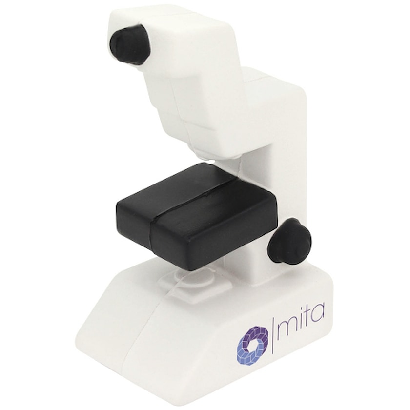 Den ultimate stressballen til forskningsbedrifter. Stressballen er designet som et mikroskop. Trykket er av høyeste kvalitet og tåler å bli knadd lenge.