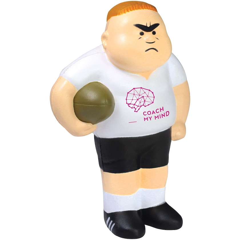Stressball med trykk som forestiller en rugbyspiller. Uansett om du elsker rugby eller bare idrett, er dette den perfekte stressballen for deg. Trykkvaliteten på stressballene fra Axon har uslåelig kvalitet.
