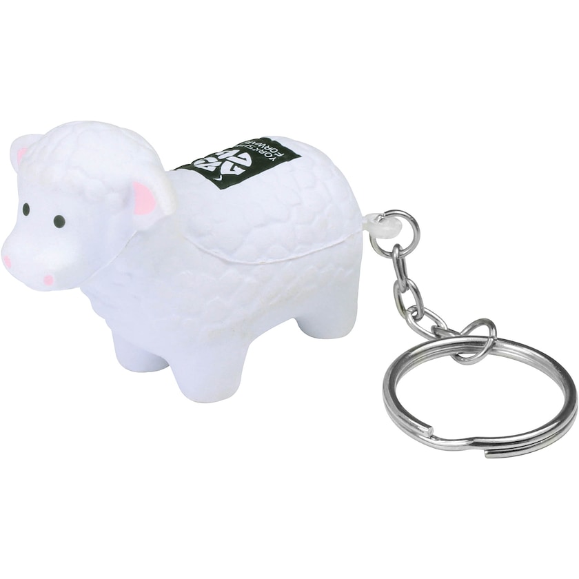 Stressball med nøkkelring. Stressballen er designet som en søt sau. Trykket er av absolutt høyeste kvalitet.