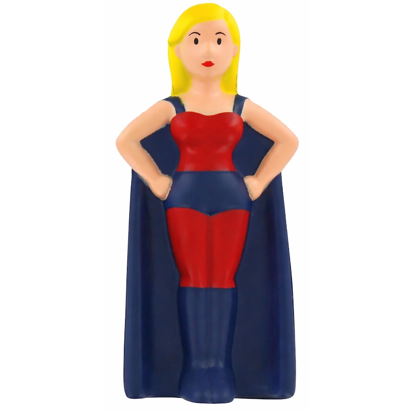 Stressball formet som en kvinnelig superhelt. Reduser stresset og hjelper deg til å bli en hverdagshelt. Trykket er av ypperste klasse.
