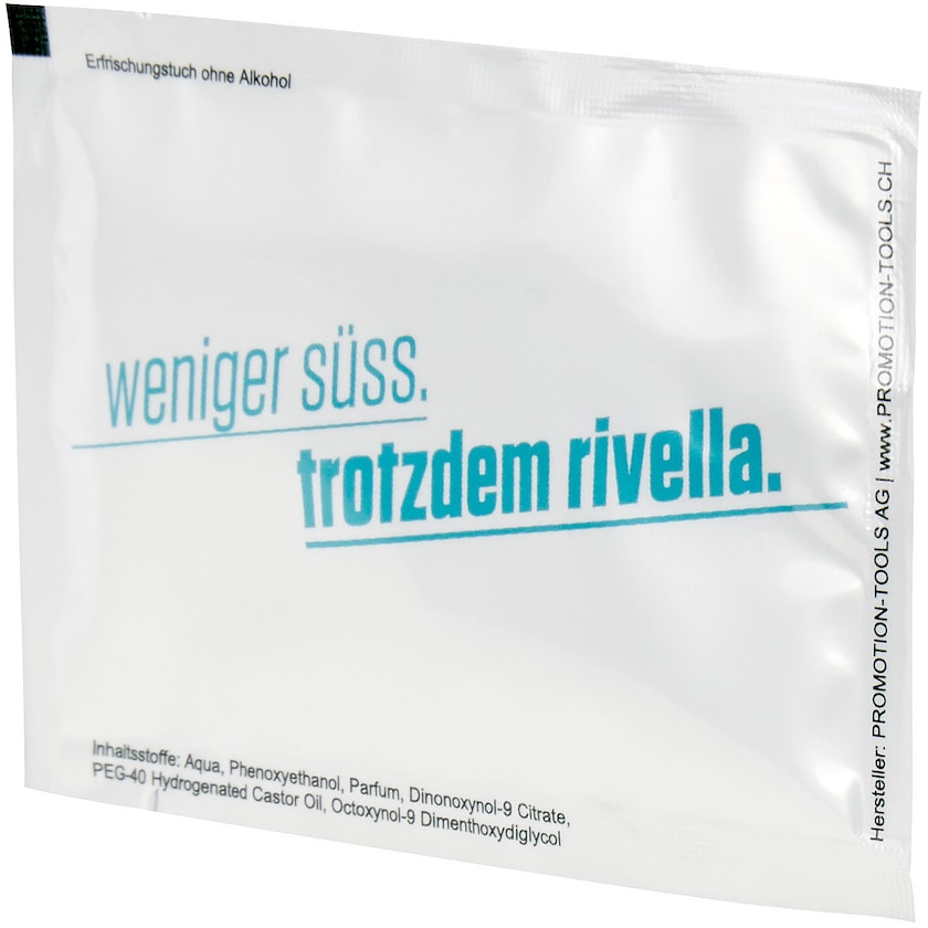 En litt større våtserviett som er mulig å bestille fra kun 1000 stk. Hele innpakkingen trykkes med en digitaltrykk. Selve våtservietten er 150 x 180 mm, og takket være at den ikke inneholder alkohol er den skånsom mot huden.
