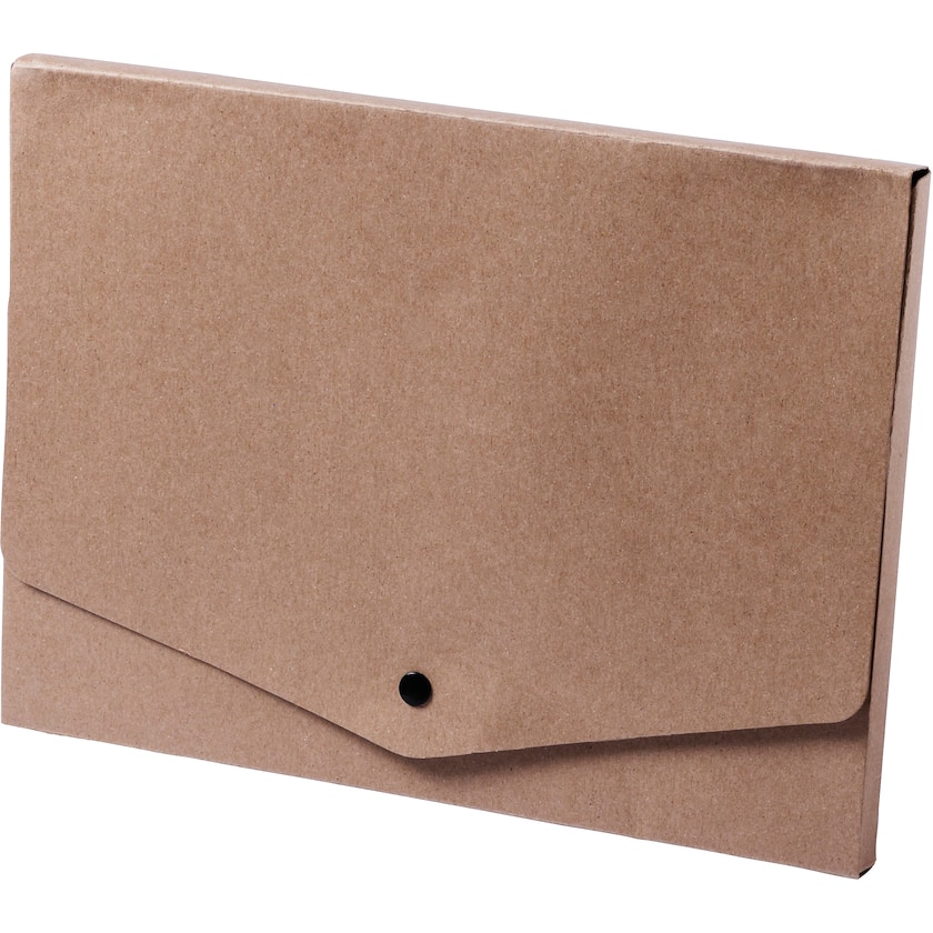 Papirmappe av gjenvunnet papir. Isolde har godt med plass for dokumenter og holdes lukket med hjelp av en knapp.