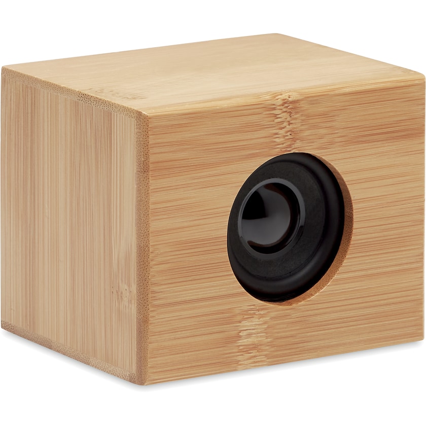 Trådløs høyttaler som også fungerer som trådløs mobillader. Høyttaleren er laget av bambus og har en spilletid på ca. 4 timer fulladet. Velg mellom trykk eller lasergravering av logoen.