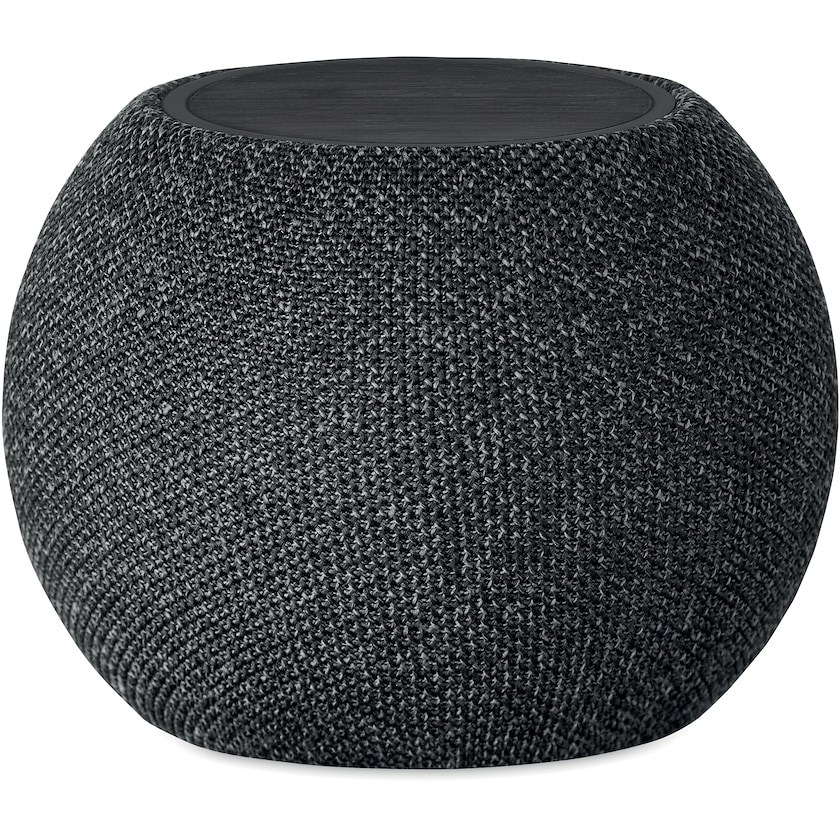 Kombinert 5.0 trådløs høyttaler og trådløs lading. Laget av ABS, RPET og svartlakkert bambus. Bruker et oppladbart Li-ION 1200 mAh batteri. SD-kort og AUX-USB-kabel inkludert. 5 timers spilletid. Merking gjøres på oversiden av høyttaleren.