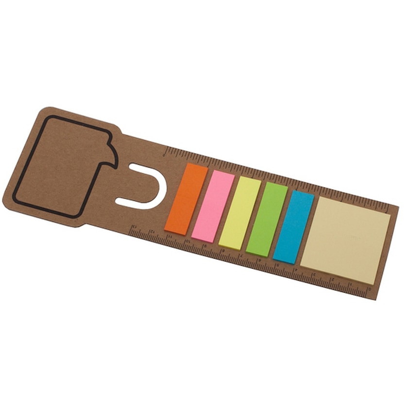Sett med merkelapper som også fungerer som bokmerke og linjal. Linjalen er gradert til 13 cm. Gradering i tommer finnes også. Laget av gjenvunnet papir.
