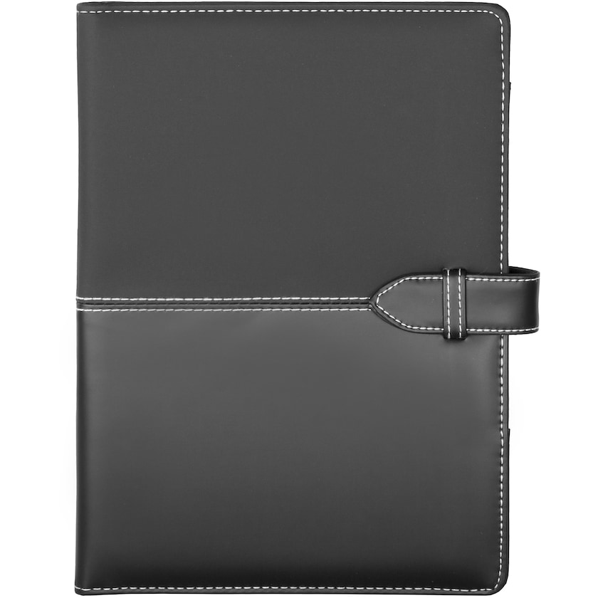 Konferansemappe med notatblokk med 20 ark og penneholder. En fin A5-mappe til en attraktiv pris! Trykk kan gjøres i maksimalt to farger.