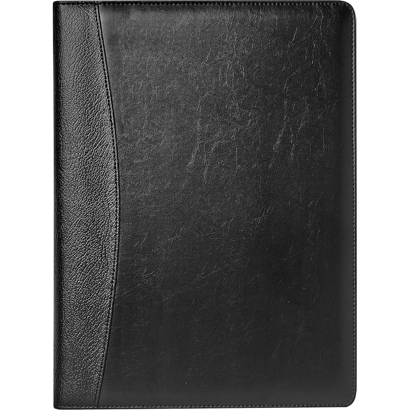Konferansemappe med minikalkulator, kulepenn og skriveblokk. Minikalkulatoren drives av solceller og skriveblokken har 20 linjerte ark.