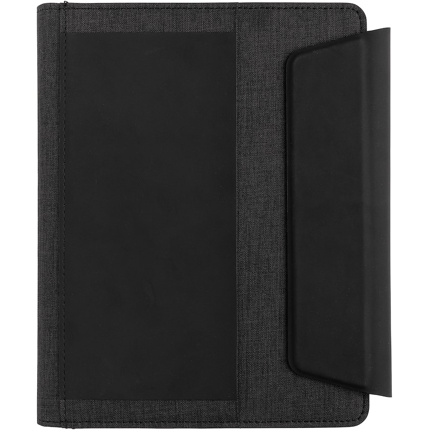 Eksklusiv konferansemappe med en powerbank på 5000 mAh. Lading kan gjøres trådløst hvis ønskelig. Powerbanken kan også brukes for seg selv uten konferansemappen. Skriveheftet har 64 kremfargede linjerte sider. Konferansemappen er laget av det miljøvennlige materialet RPET og PU. Leveres i en stilig gaveeske. Det er bare mulig med 1-fargetrykk.