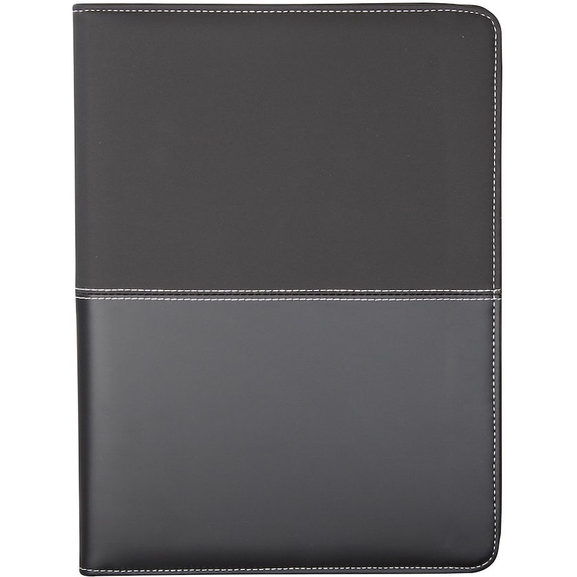 Konferansemappe med stilren utside og pene sømmer i kontrastfarge. Innvendig er det en skriveblokk med 20 ark, pennholder og visittkortlomme. Mappen har glidelås. Trykket kan gjøres i maksimalt to farger.
