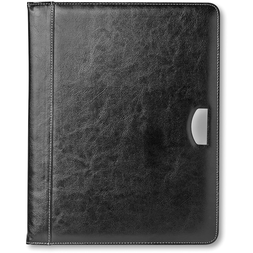A4-konferansemappe av kunstlær. Leveres med en skriveblokk med 20 ark. Merking skjer enten med trykk på kunstlæroverflaten eller lasergravering på metallplaten.