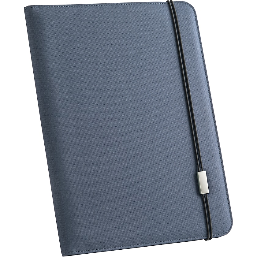 Konferansemappe av resirkulert materiale. Innvendig er det en skriveblokk med 20 linjerte ark samt en penneholder. Konferansemappen er produsert av RPET, dvs. resirkulerte PET-flasker.
